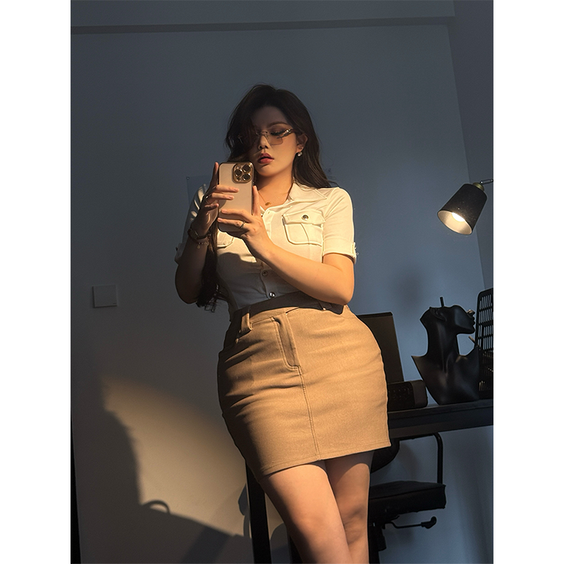 高腰梨型身材A字裙伞裙 半身裙百褶裙大码 胖mm显瘦百搭西装 中长款
