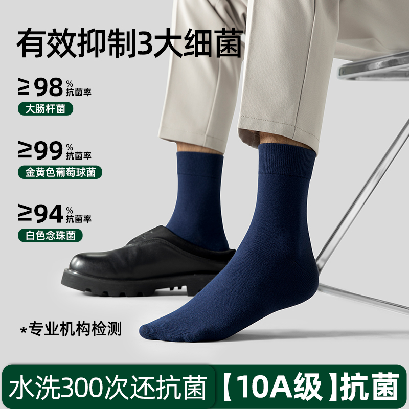 薄黑色中长筒通勤袜男款 子墨棉品商务袜男士 10A抗菌艾草防臭秋季