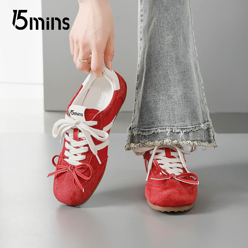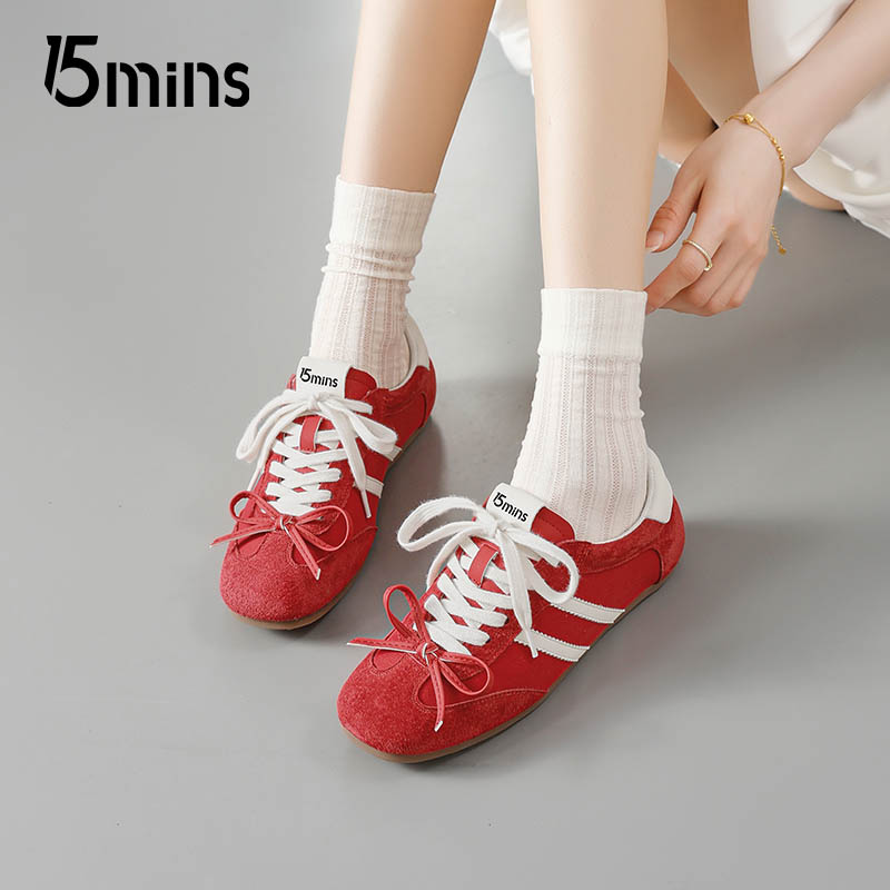 软底百搭透气阿甘鞋 15mins红色德训鞋 芭蕾风休闲鞋 新款 女2025夏季