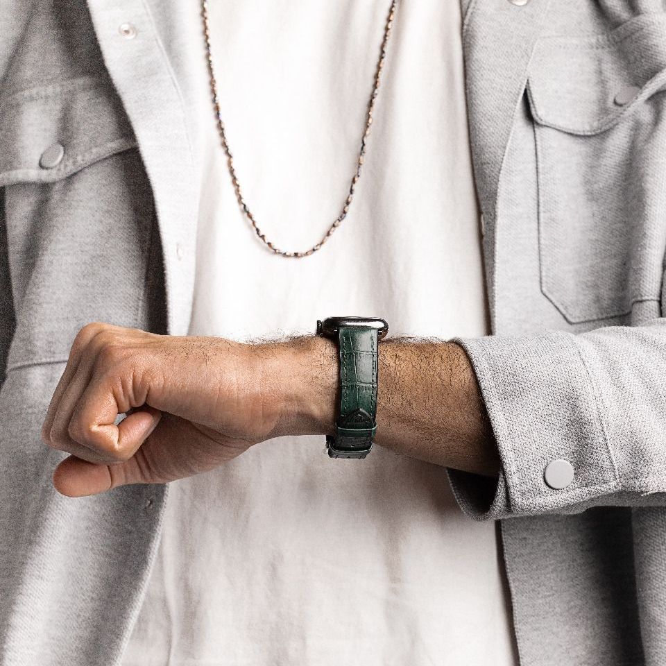 新品 海奕施进口天然橡胶牛皮表带适用绿水鬼海马佳明智能手表