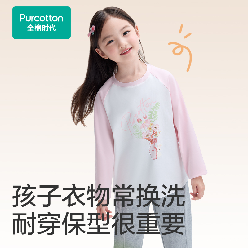 全棉时代儿童T恤春秋季 纯棉易去污运动透气t恤男女童t恤 2025新款
