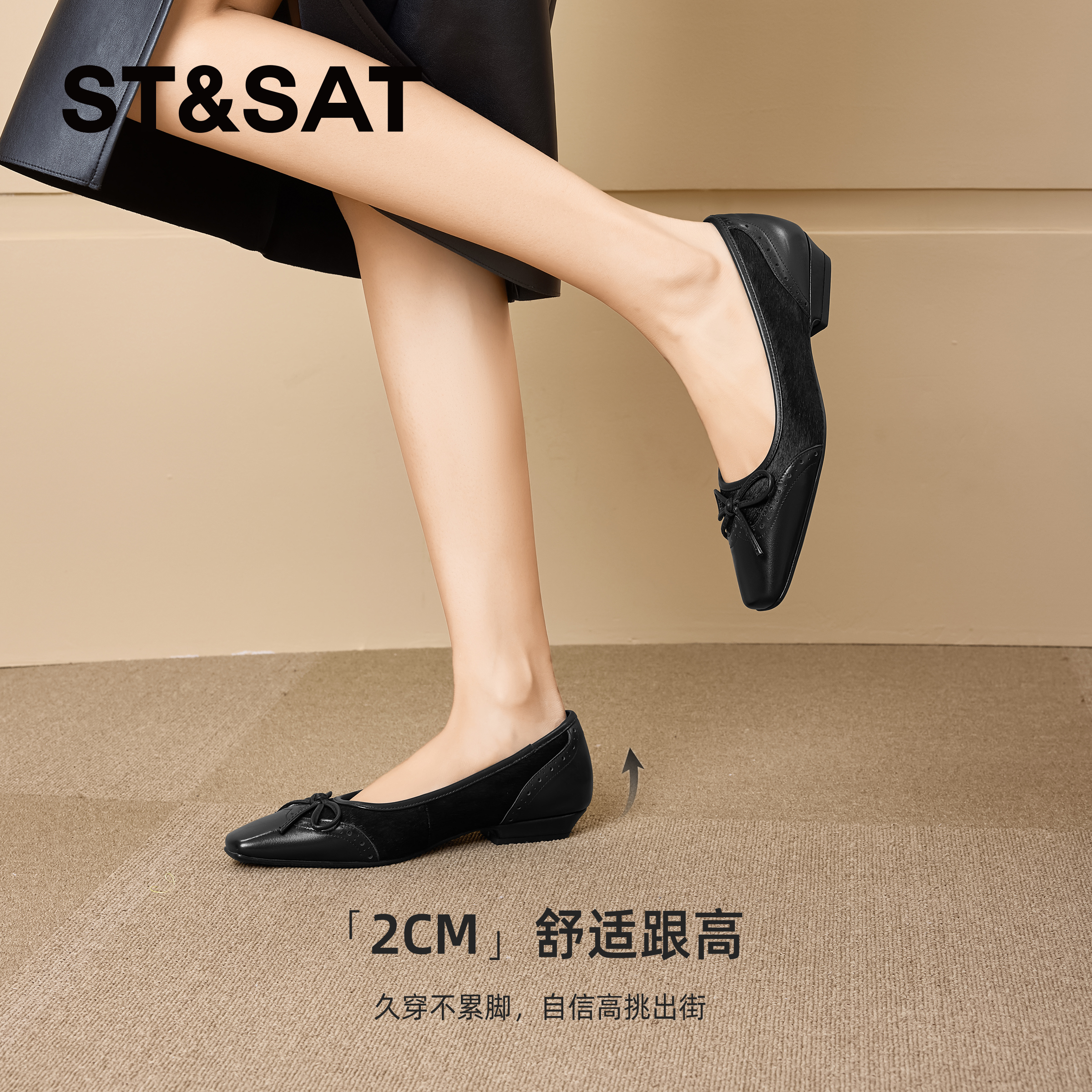 2025春秋新款 星期六蝴蝶结柔软平跟浅口单鞋 芭蕾舞鞋 头层牛皮