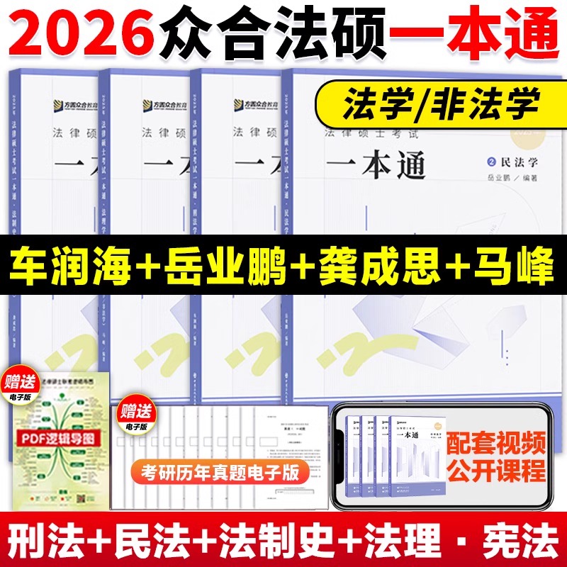 马峰宪法学法理车润海刑法岳业鹏民法龚成思法制史 法律硕士一本通 背诵宝典通关必刷2000题 法学非法学 2026众合法硕一本通