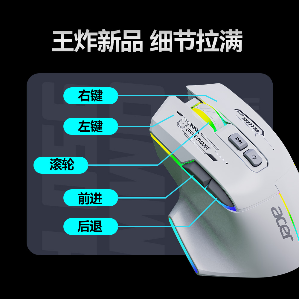 宏碁无线鼠标游戏电竞蓝牙三模有线机械笔记本台式 电脑cf吃鸡专用
