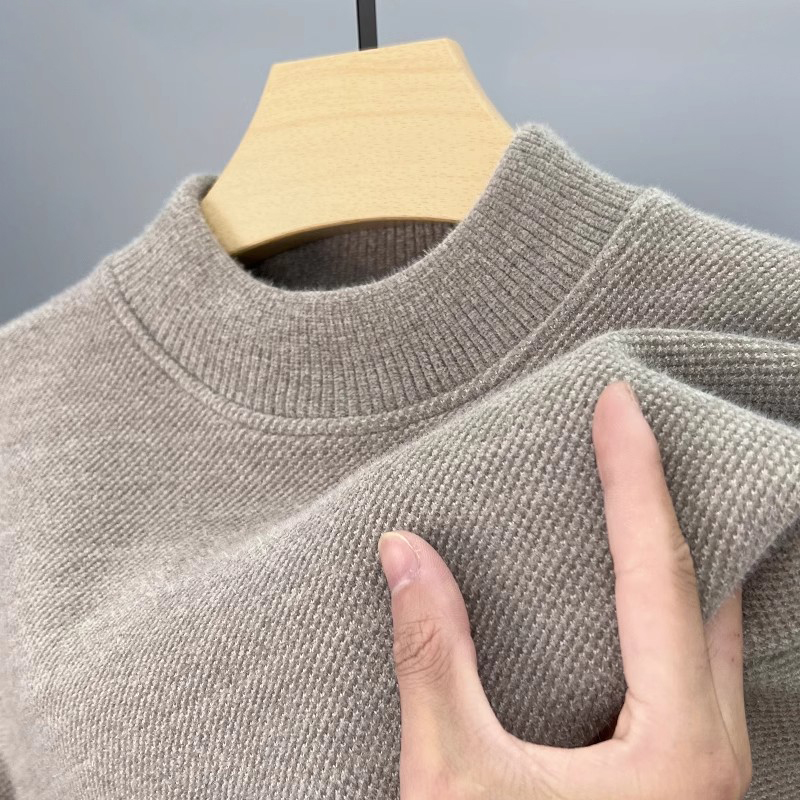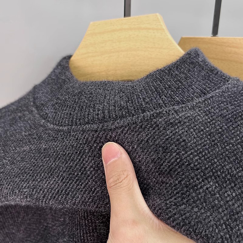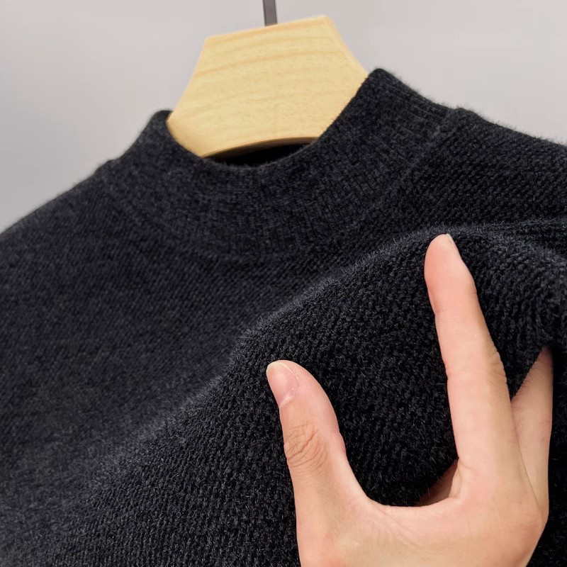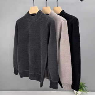 保暖打底衫 纯色一体绒半高领雪尼尔毛衣男士 加绒加厚保暖上衣冬装