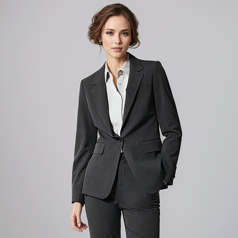 格子秋季 套装 新款 高级感一粒扣小西装 两件套 职业工装 灰色长裤 女裤