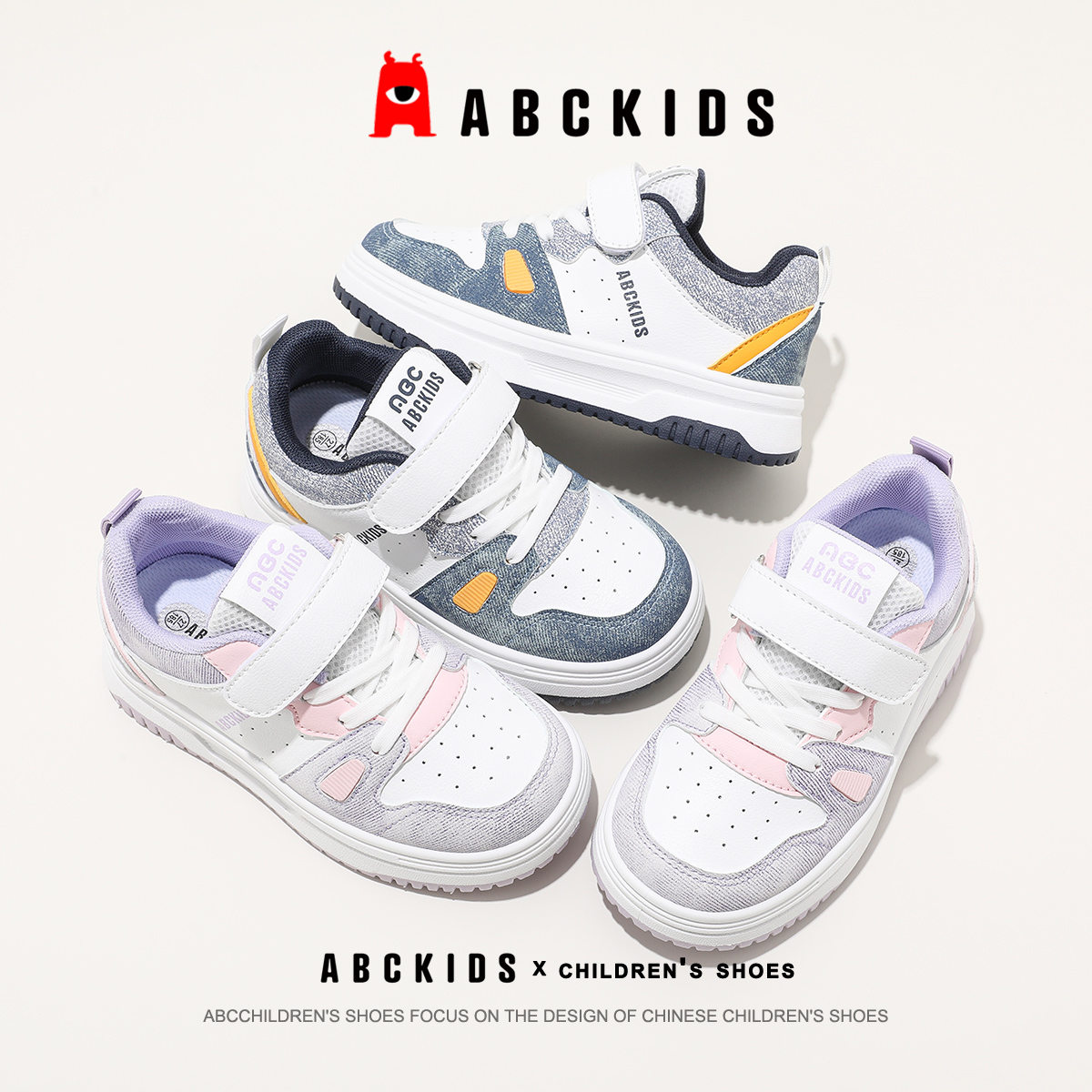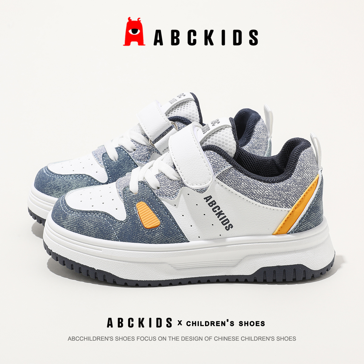 男孩鞋 ABCkids童鞋 魔术贴款 拼接色轻便透气儿童休闲鞋 子 男童板鞋