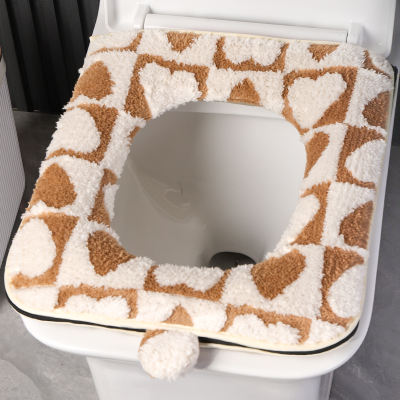 舒棉绒冬季 坐便套 保暖毛绒马桶垫方形加厚加大垫圈家用防水拉链款