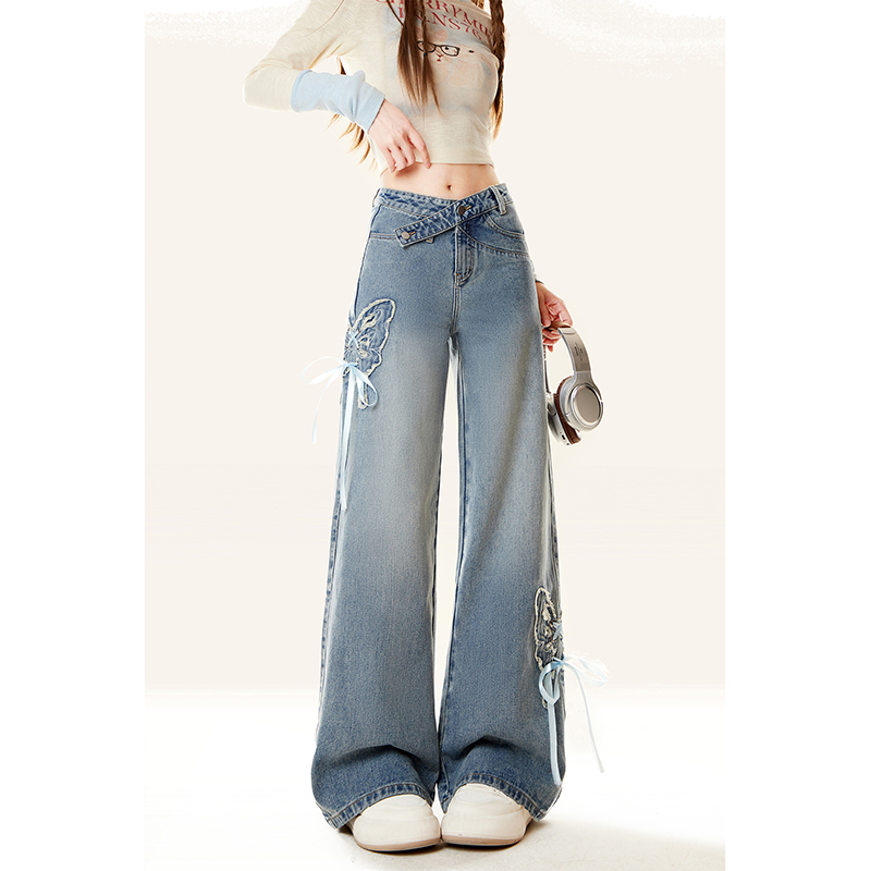 女款 秋冬2025新款 美式 高街窄版 子秋季 牛仔裤 高腰宽松阔腿裤 直筒裤