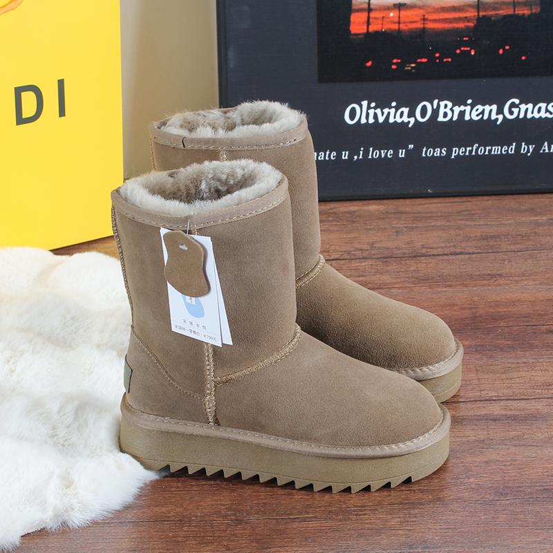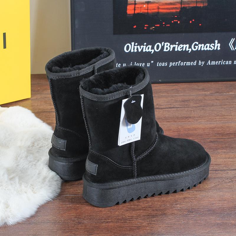 抗寒全羊毛厚底雪地靴女中筒2025冬新款 皮毛一体防滑女靴保暖棉鞋