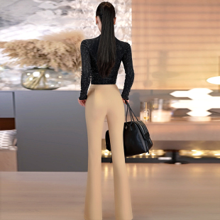 高腰垂感窄版 新款 羊毛西装 裤 卡其色阔腿裤 休闲直筒裤 女2025春秋季
