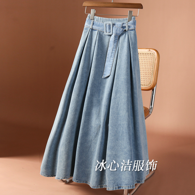 高腰大摆系带牛仔半身裙女秋冬2025新款 遮胯显瘦a字裙伞裙 中长款