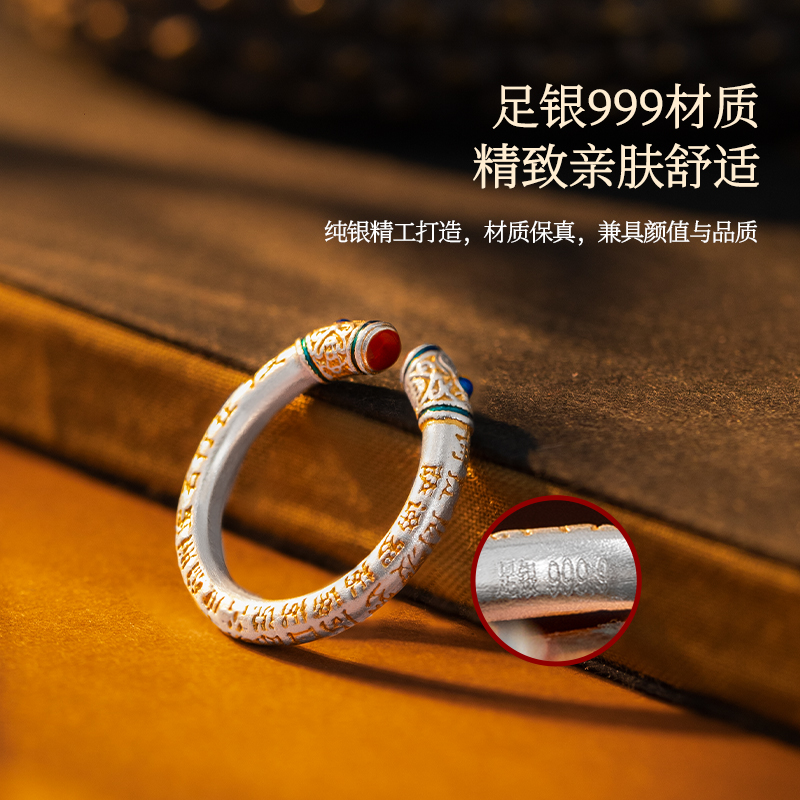 S999足银钱币戒指女招财聚财素圈指环小众设计转运食指纯银国潮风