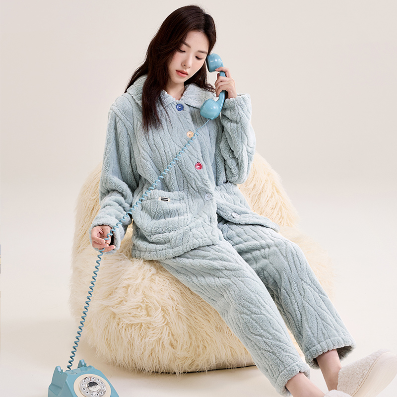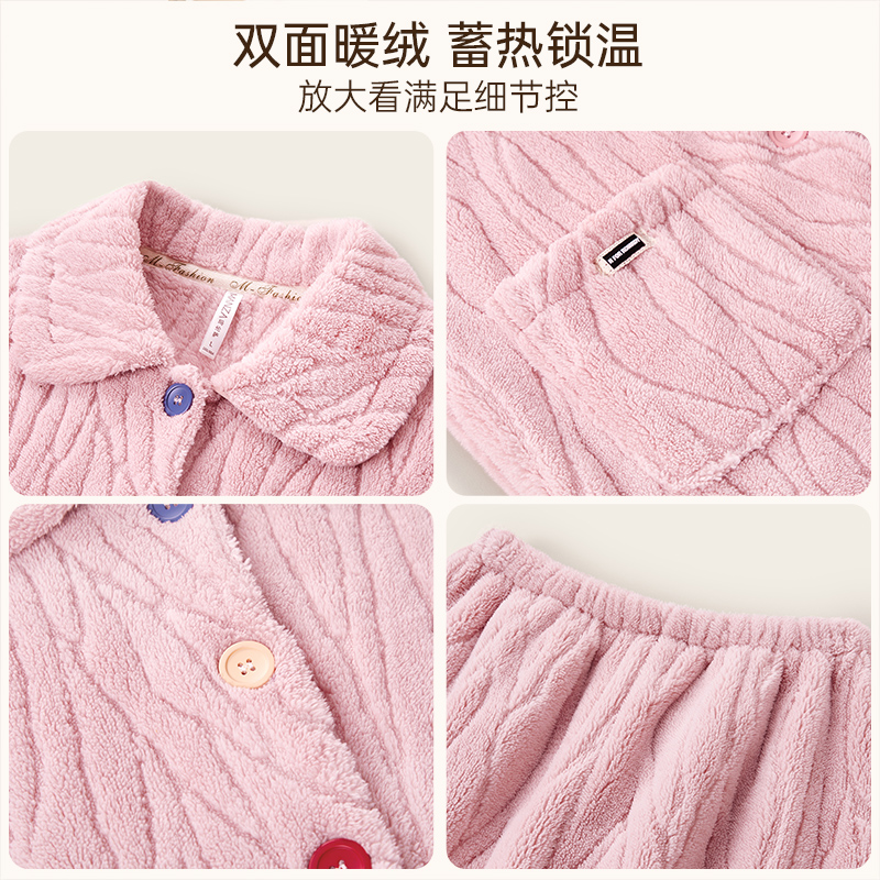 男士 家居服套装 中厚抗静电薄绒开衫 红豆暖暖绒海岛绒睡衣女秋冬款
