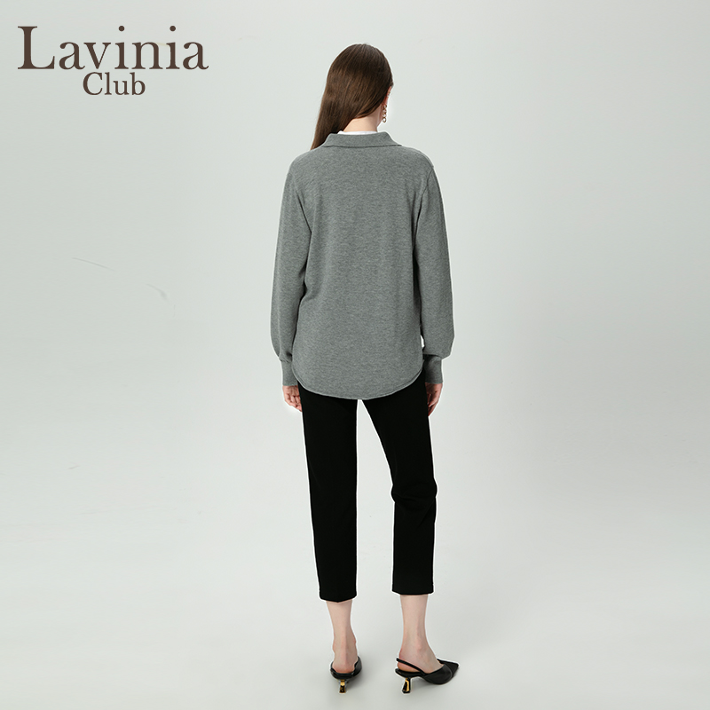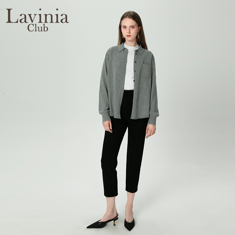 简约气质通勤毛衣I47Z115 女冬新款 Lavinia拉维妮娅毛针织衬衫 开衫