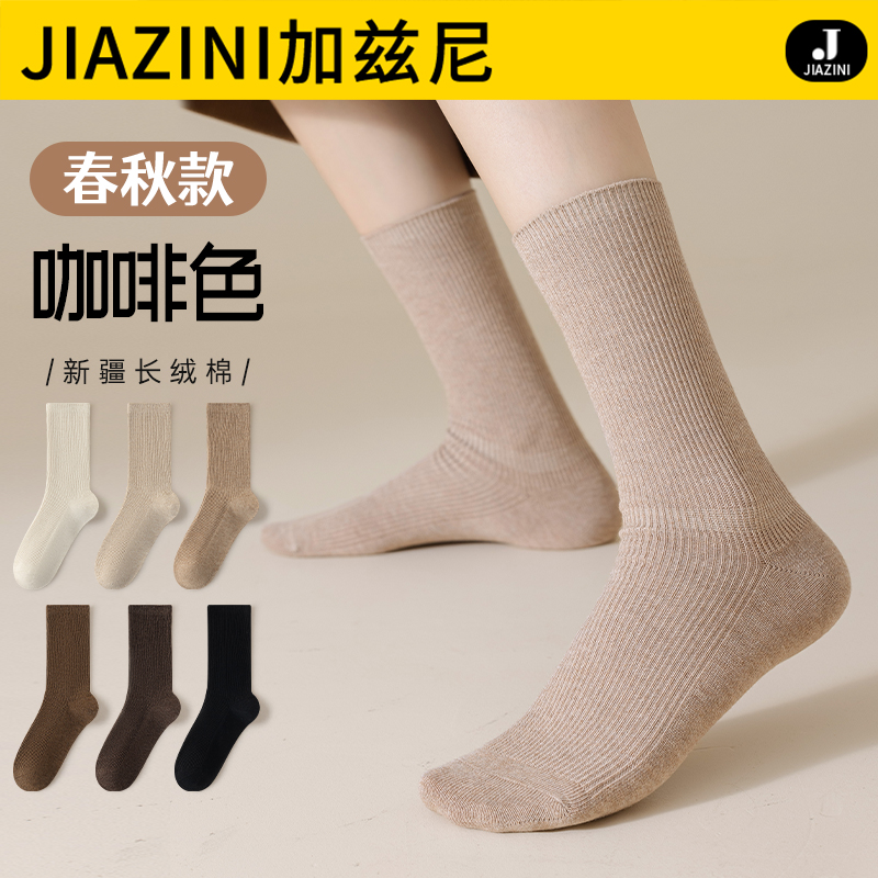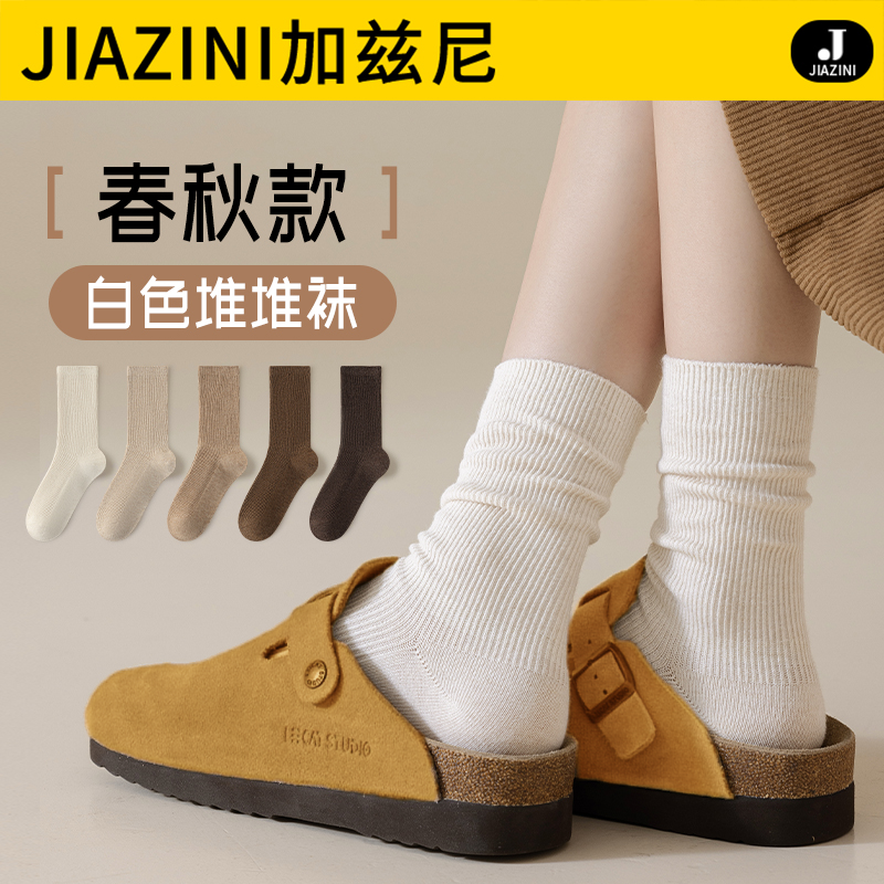 帕兰朵袜子女中筒袜春秋季 棉袜吸汗透气纯色百搭堆堆袜防臭长筒袜