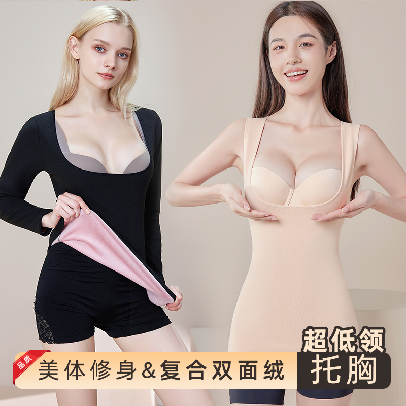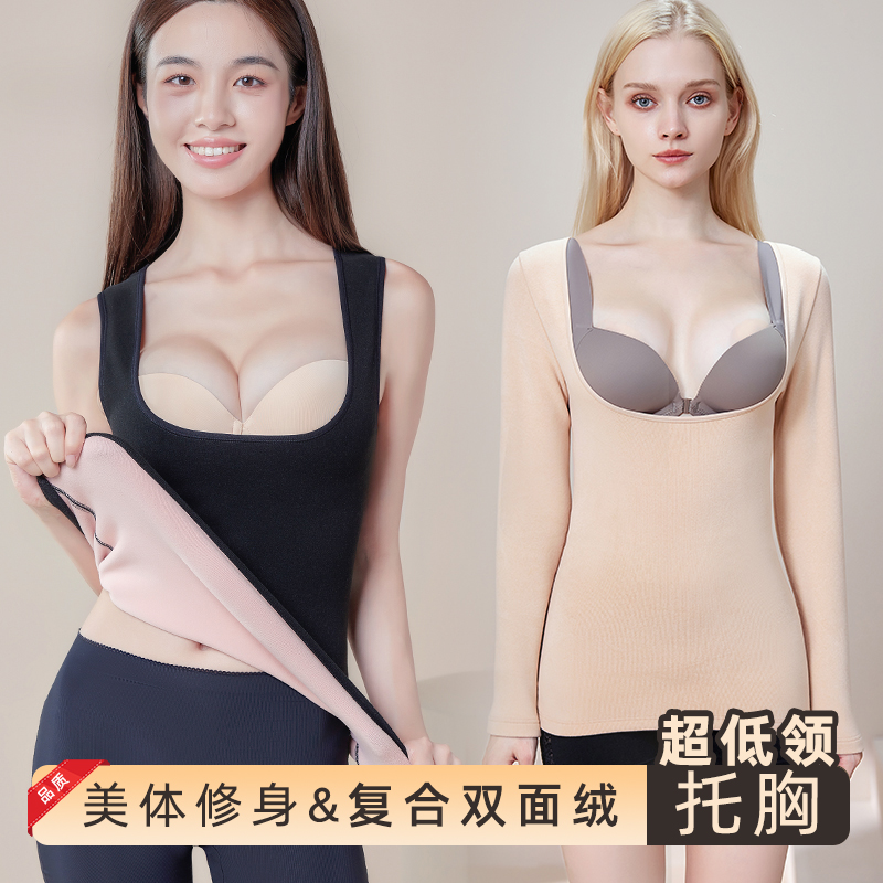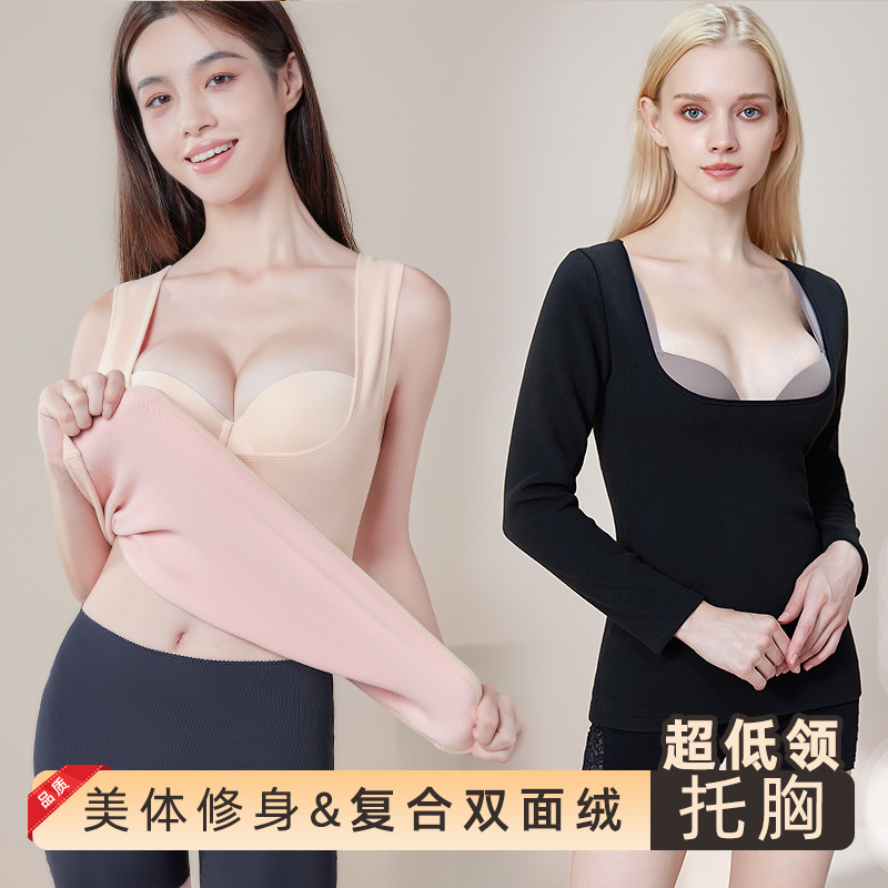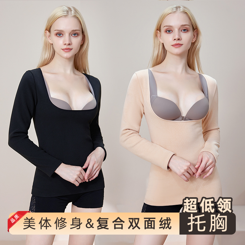 超低领哺乳衣产后保暖内衣女汉服礼服打底上衣U领托胸加绒加厚