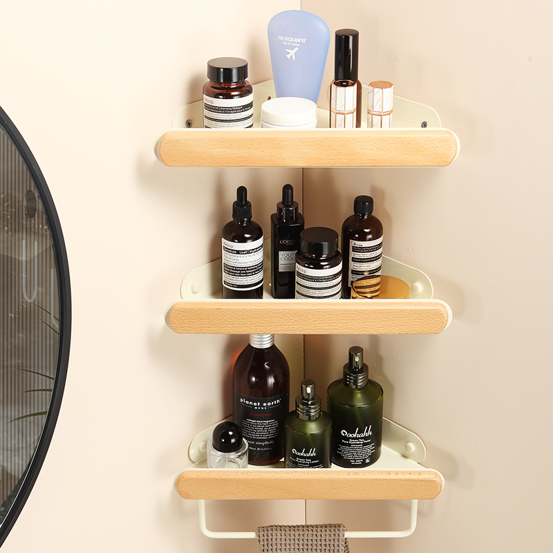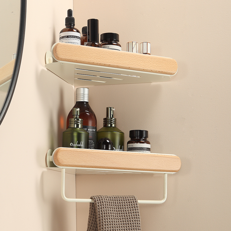 奶油风浴室卫生间置物架免打孔厕所洗手间洗漱台壁挂三角架实木