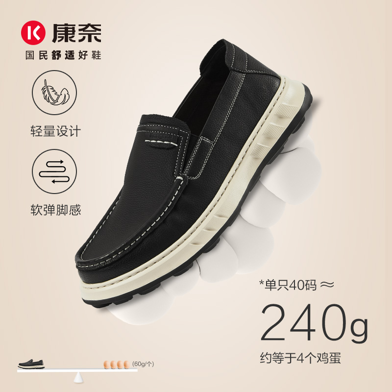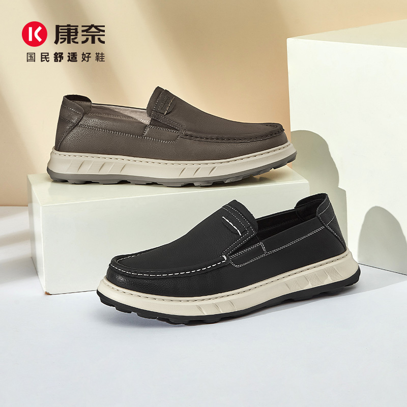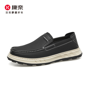 懒人豆豆鞋 康奈男鞋 磨砂质感舒适皮鞋 真皮商务休闲鞋 2025春秋新品