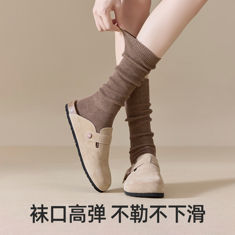 小腿袜子女纯棉春秋季 高筒咖色及膝袜半筒 压力袜套长筒全棉秋冬款