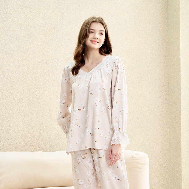 梭织棉家居服薄款 睡衣套装 女士长袖 美标官方旗舰店睡衣春秋新款