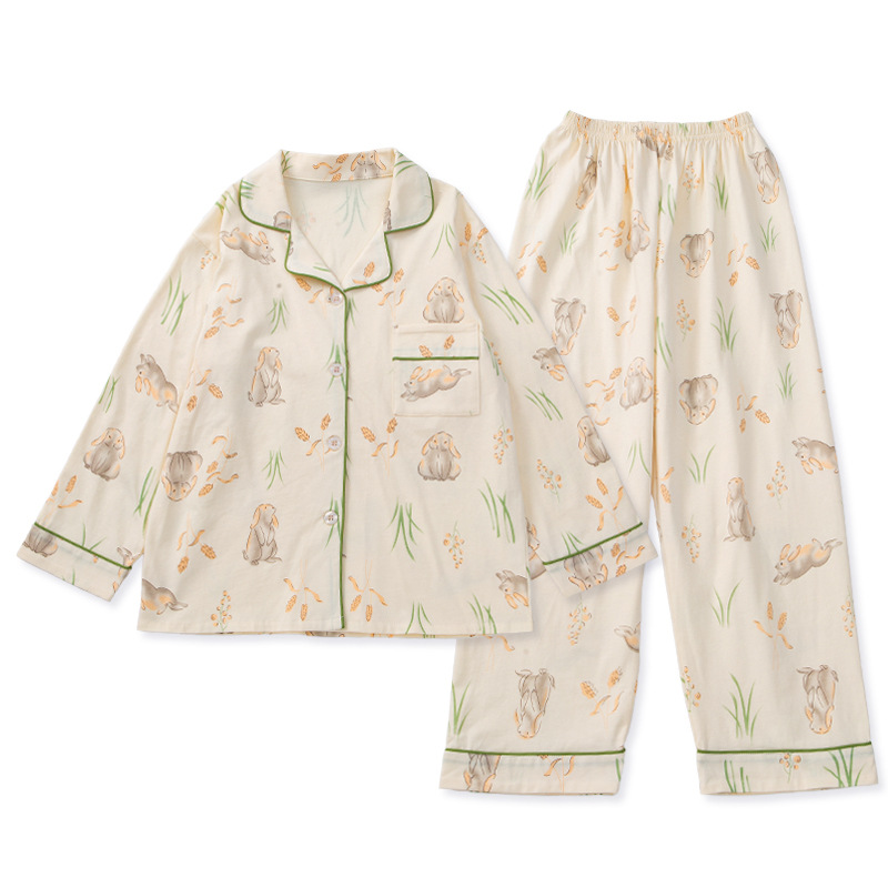 休闲家居服套装 男女同款 可出门 女长袖 安比斯情侣睡衣舒适纯棉秋季