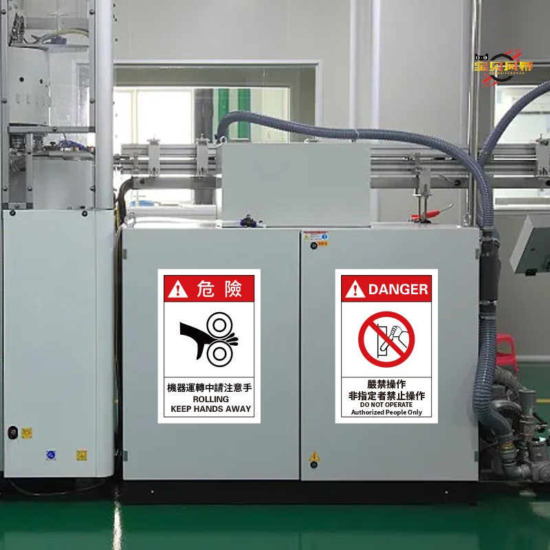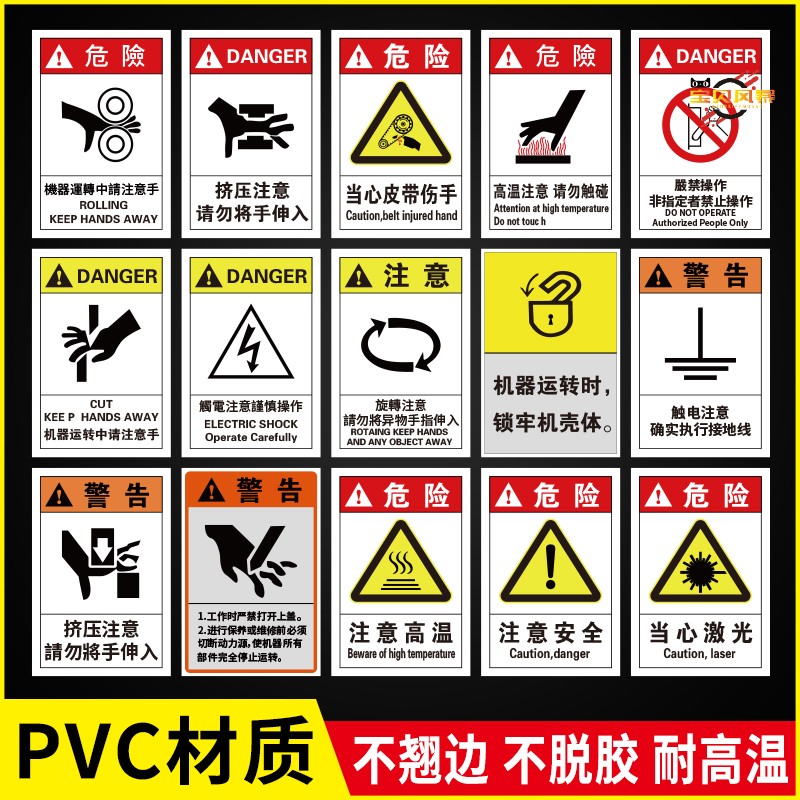 机械设备警示PVC标识牌带3M背胶标签机器标识当心激光注意高温有电危险高压危险当心触电警告请勿触摸标识贴