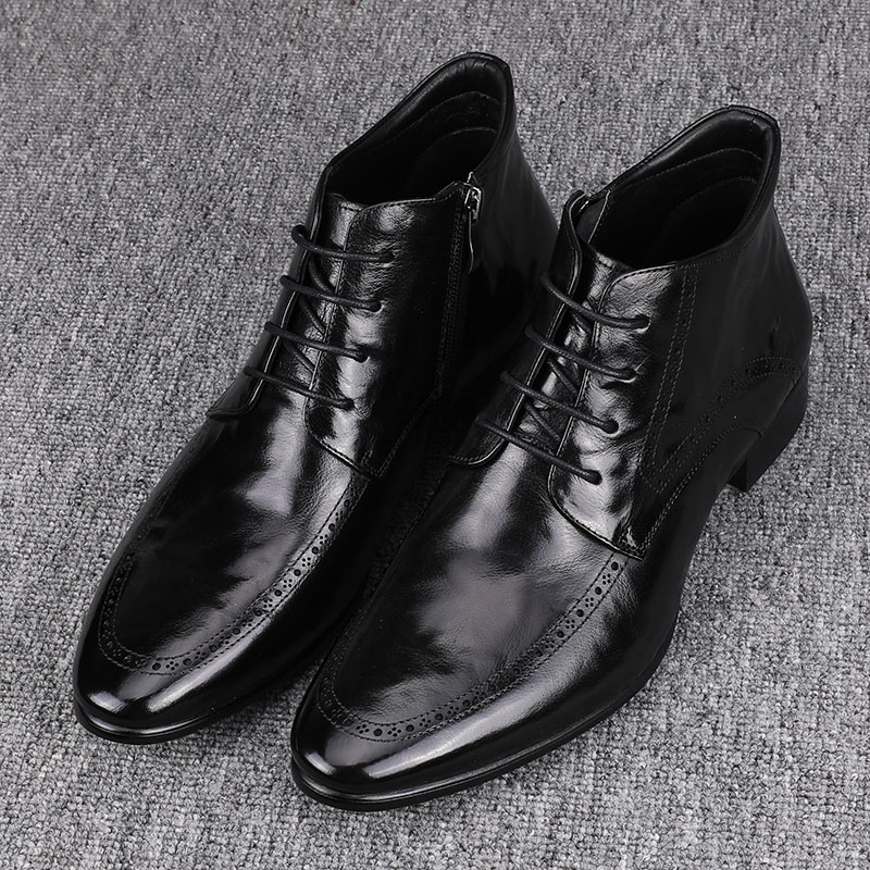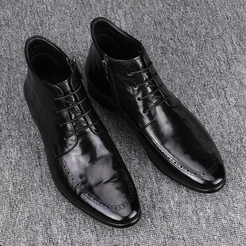 小尖头高帮休闲皮鞋 男士 增高厚底真皮切尔西短靴 潮流瘦版 2025新款