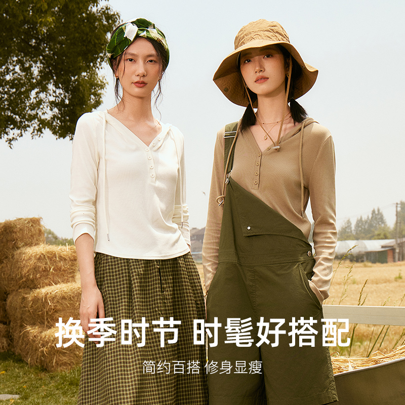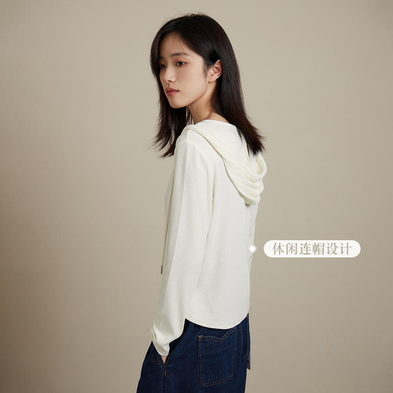 外穿休闲T恤小个子内搭叠穿帽衫 卫衣春秋薄款 上衣 长袖 连帽打底衫