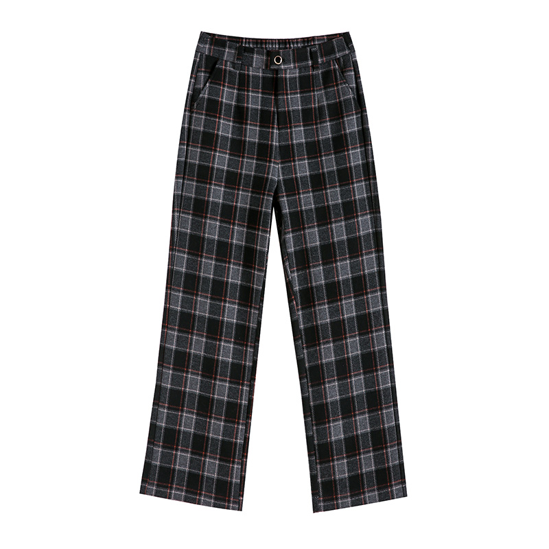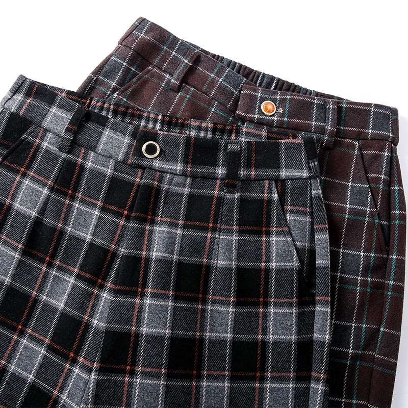 子 垂感宽松高腰羊毛直筒小个子裤 毛呢格子阔腿裤 女九分2025秋冬款