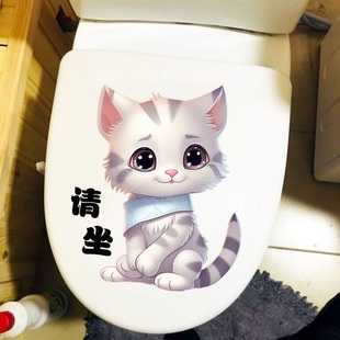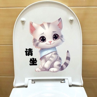防水贴纸可爱请坐猫咪贴卫生间厕所装 饰浴室搞笑墙贴马桶盖贴画