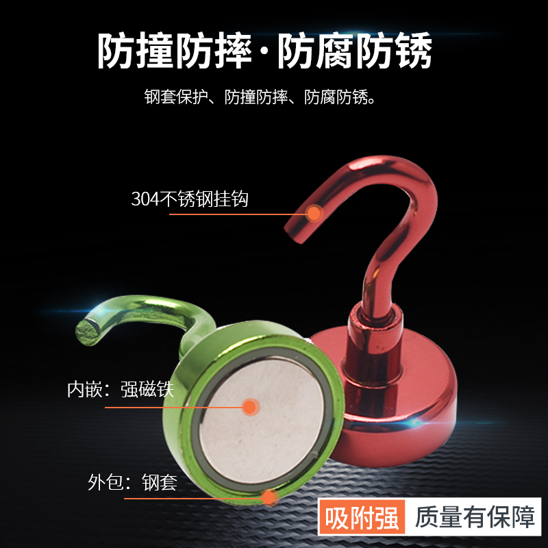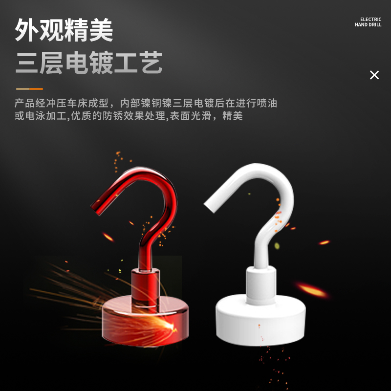 钕铁硼磁性挂钩 E16金属镀色无痕磁铁强磁挂钩 强力彩色磁铁挂钩
