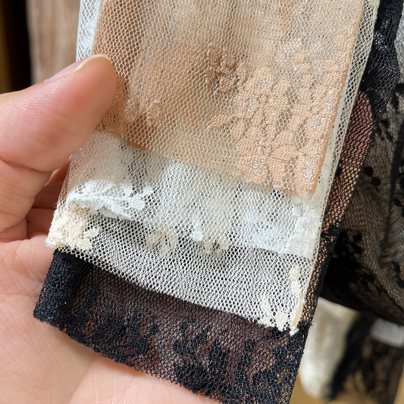 网纱上衣毛衣内搭叠穿纱衣 洋气薄款 杏色高领蕾丝打底衫 女2025新款