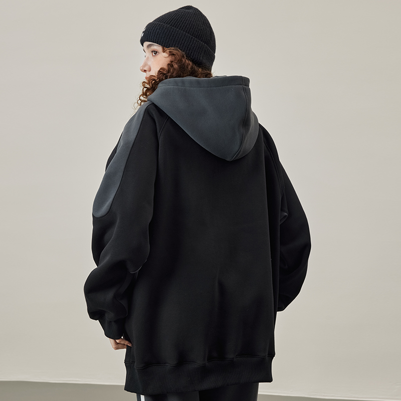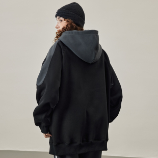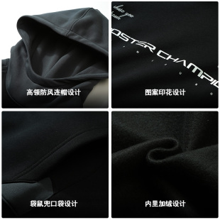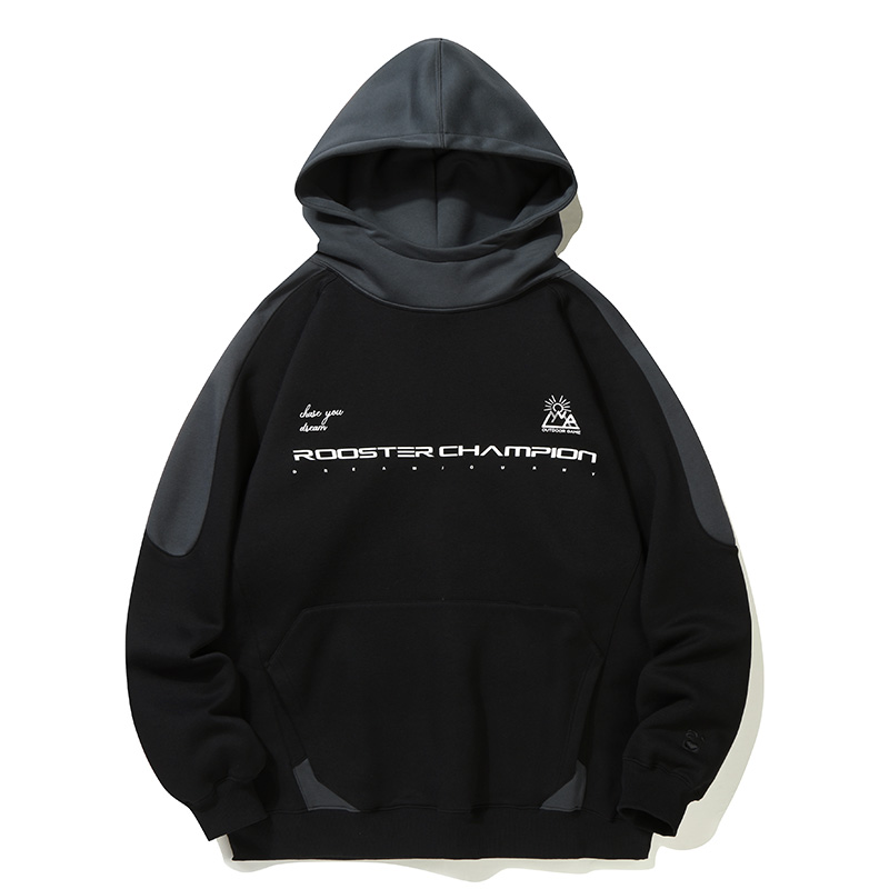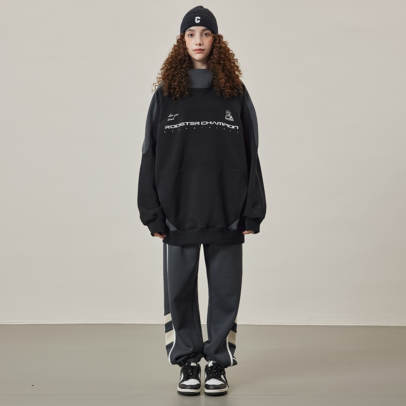 公鸡冠军卫衣女新款 秋冬宽松黑色连帽高街撞色半高领加绒情侣外套