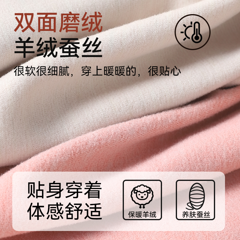 德绒羊绒蚕丝速暖加绒加厚冬季 猫人保暖内衣女士套装 无痕秋衣秋裤