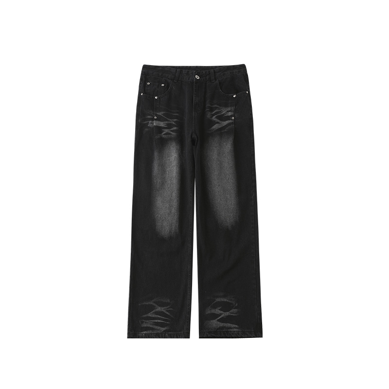 cleanfit潮流高街直筒阔腿长裤 男新款 水洗牛仔裤 LAMLICKA黑色美式