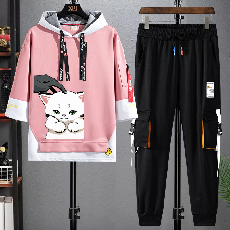 t恤夏季 两件套男装 套装 休闲一套搭配痞帅长裤 男潮流宽松男装 短袖