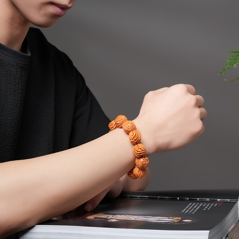月印百川桃核手串 刺龙桃核单圈文玩手链 男女款