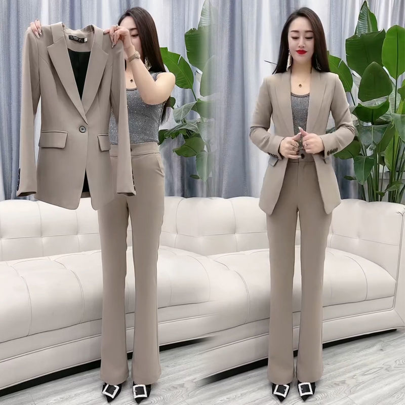 洋气显瘦小香风西服外套微喇裤 女早秋新款 两件套 套装 网红气质时尚