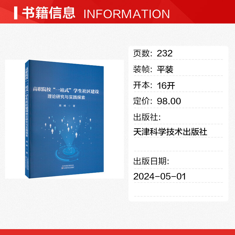 周峰 著 天津科学技术出版 一站式 社 图书籍 学生社区建设理论研究与实践探索 新华书店正版 高职院校 育儿其他文教