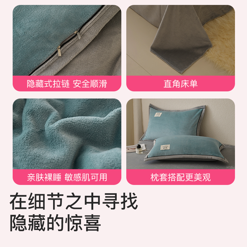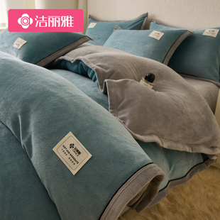 洁丽雅冬季 牛奶绒被套单件加绒珊瑚绒法兰绒单人被罩150x200x230
