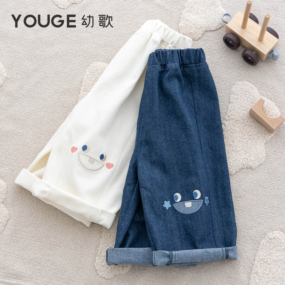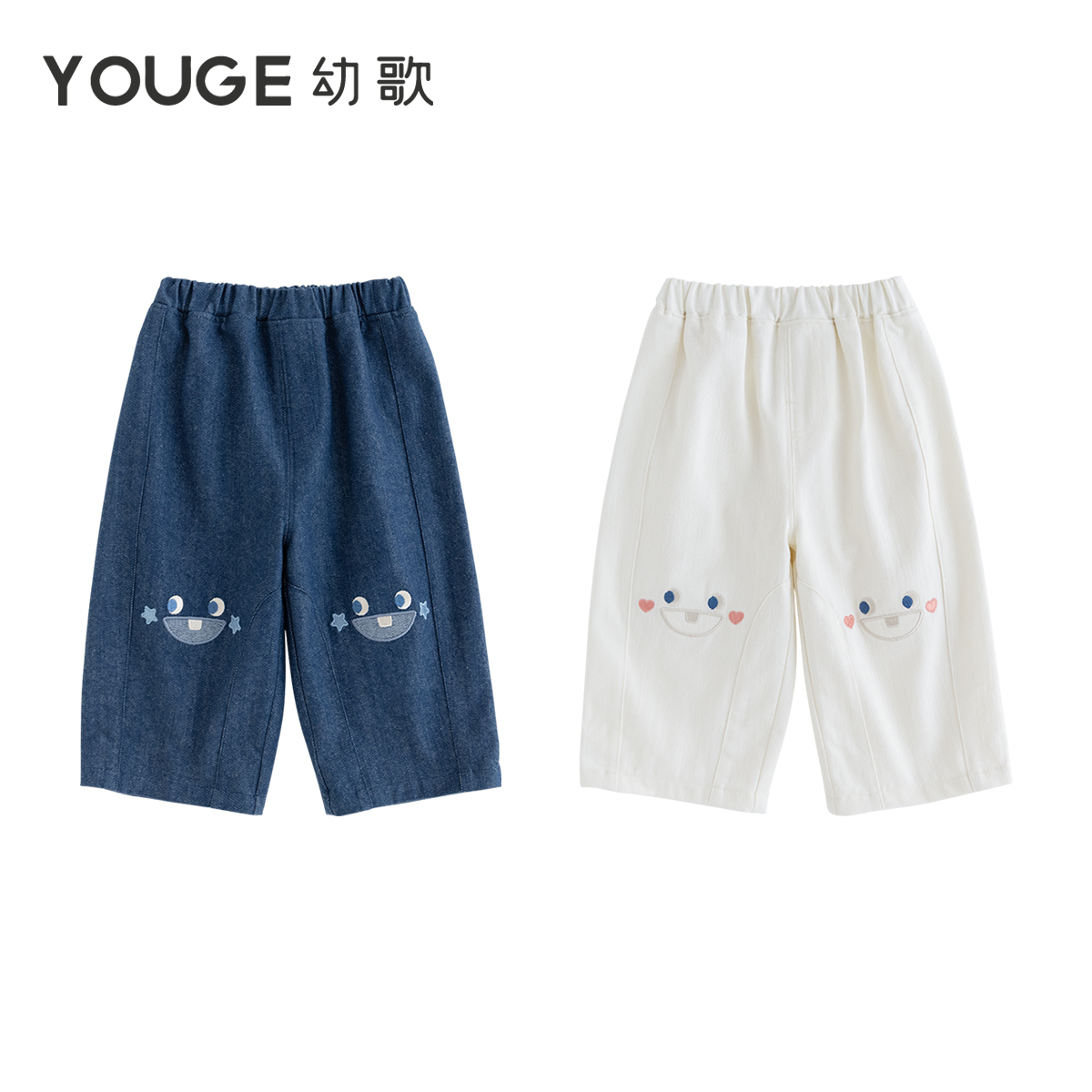 宽松笑脸舒适长裤 YOUGE幼歌 卡通表情刺绣牛仔裤 新款 潮 婴幼儿秋季