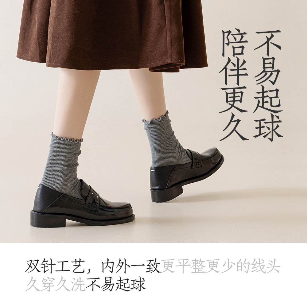 纯棉中筒棕咖色堆堆袜配勃肯鞋 2025新款 长袜 秋冬季 木耳边袜子女款