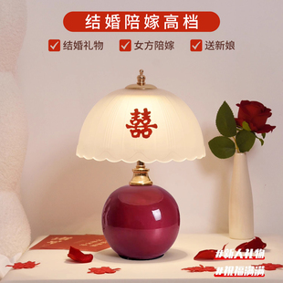 结婚台灯婚房床头灯一对酒红色长命陪嫁婚庆长明灯高级感新婚礼物