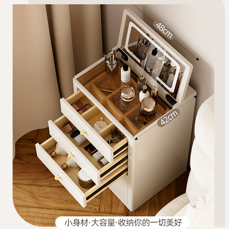 鹿匠智能梳妆台带保险箱一体式 隐形指纹防盗保险柜家用化妆镜带灯抽屉柜带锁小户型卧室衣帽间化妆桌床头柜