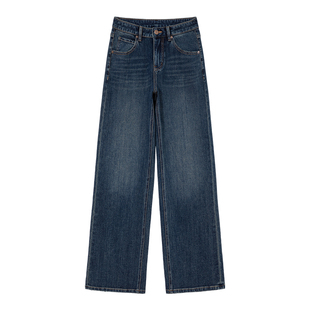 大直筒牛仔裤 加绒上新 2025秋冬新款 高腰阔腿牛仔裤 太平鸟广角裤