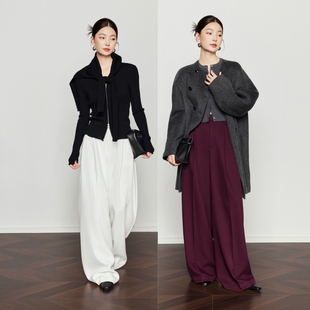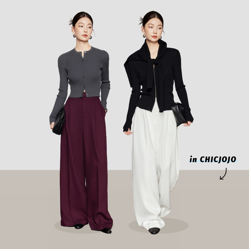 宽松时尚 女2024新款 CHICJOJO白色阔腿裤 气质休闲裤 智性大女主