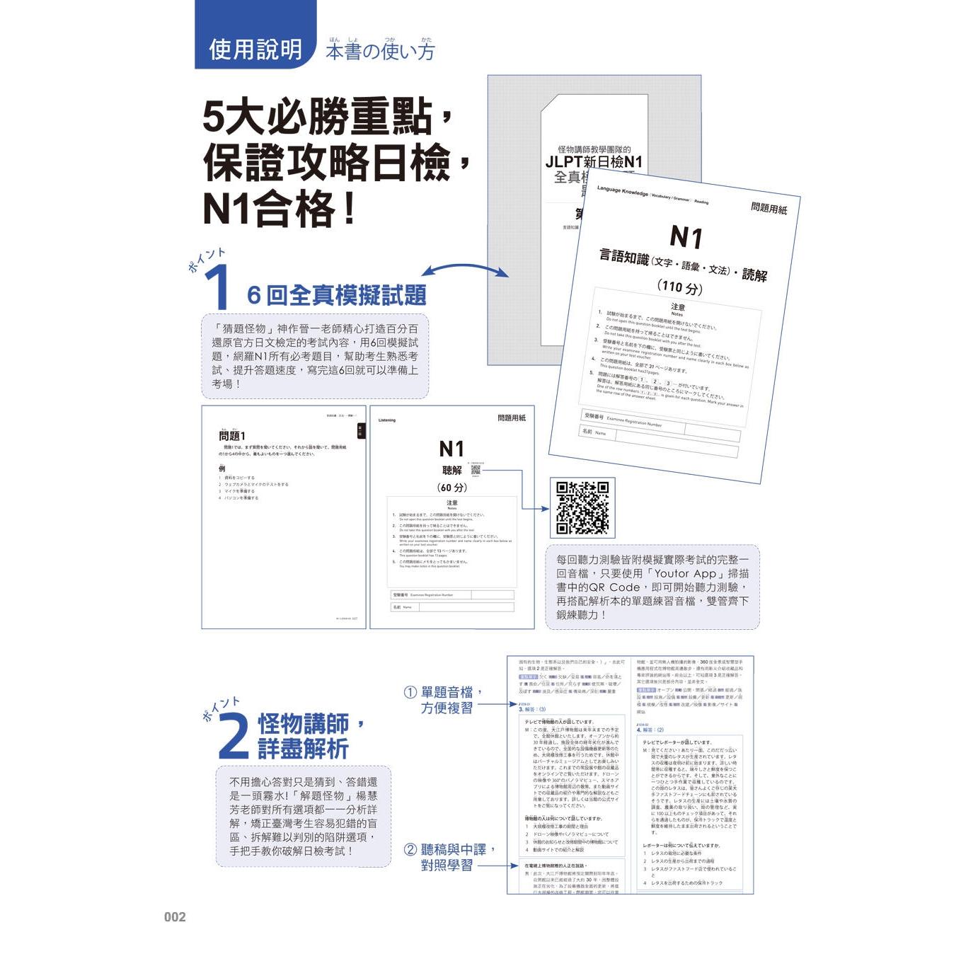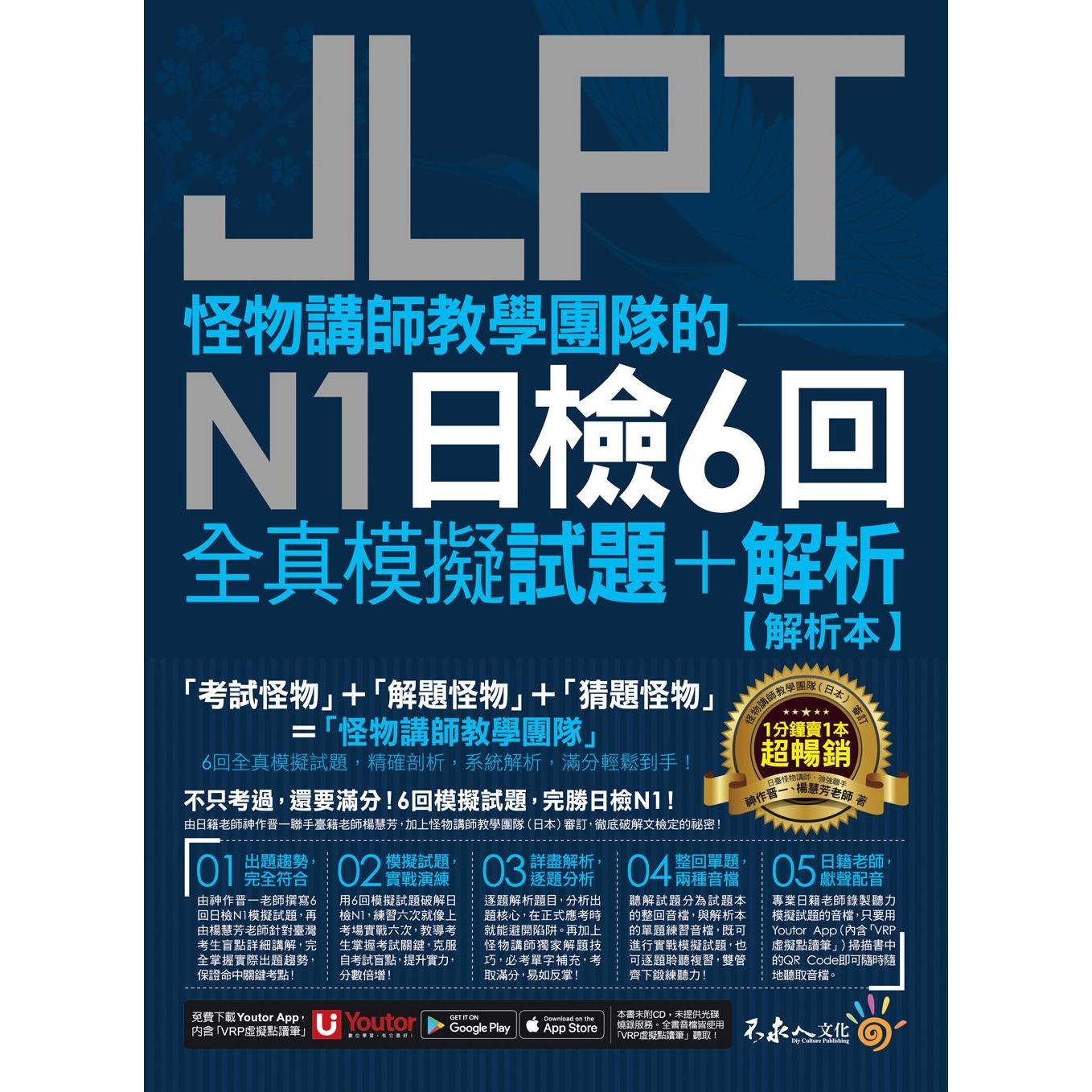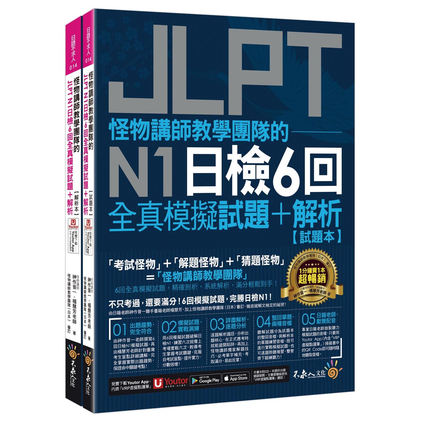 附「Youtor 神作晋 JLPT 不求人文化 防水书套 App」内含VRP虚拟点读笔 2书 解析 N1日检6回全真模拟试题 怪物讲师教学团队 预售