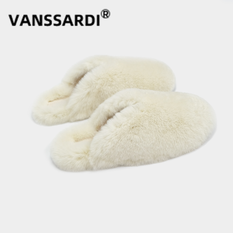 时尚 家居拖鞋 兔毛毛毛包头保暖防滑静音木地板男女皮草拖 新款 冬季
