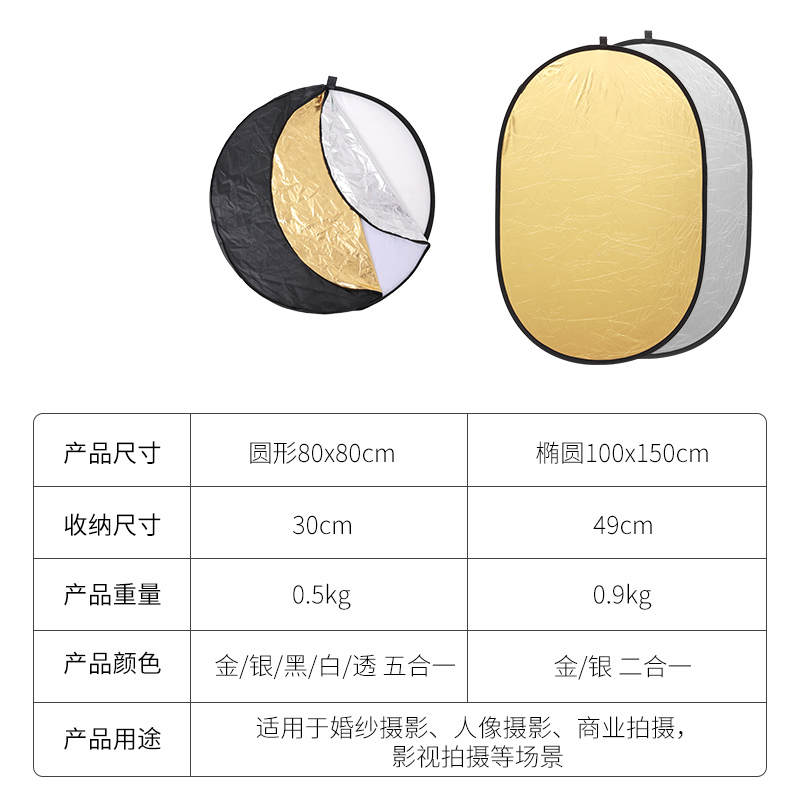 反光板摄影80cm圆形五合一手提打光板照相柔光板黑色补光板折叠便携遮光板拍照反光板影楼外景小型挡光板110